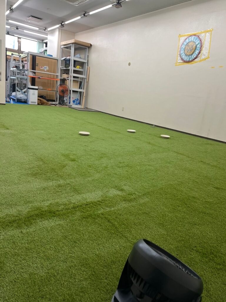 昼からは、現場作業に戻ります。 先日施工した人工芝の「接着確認」です。