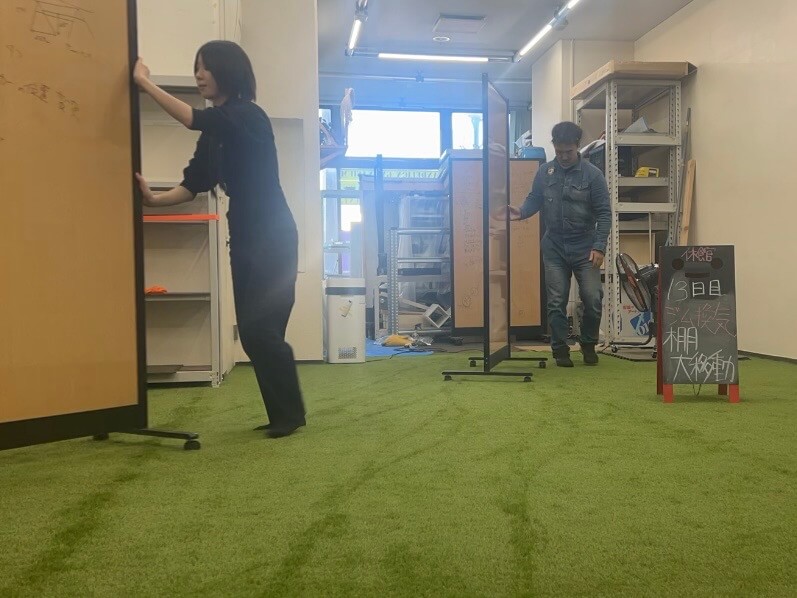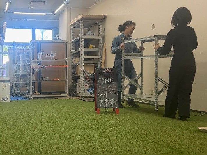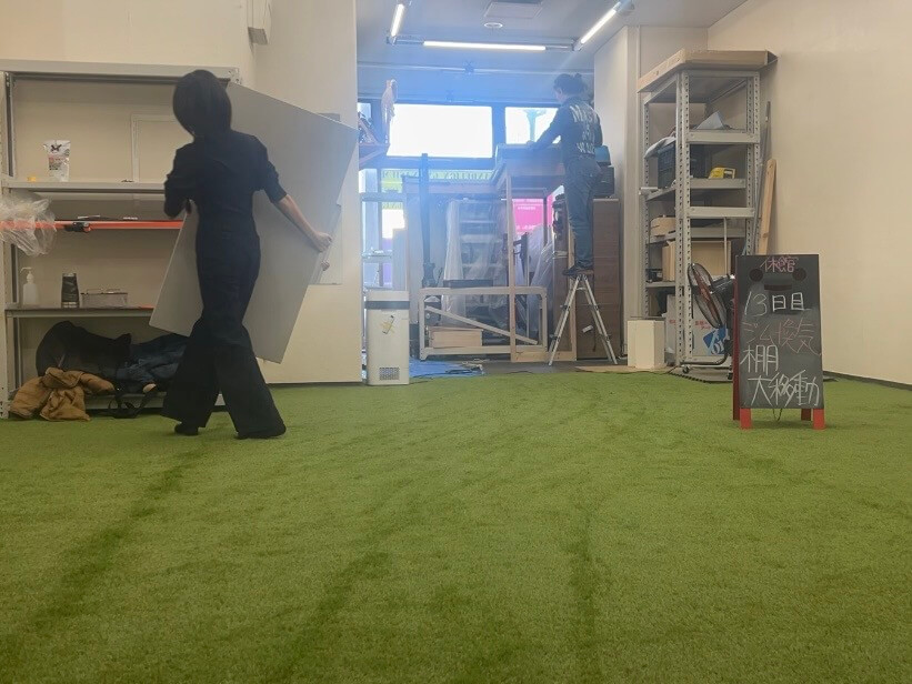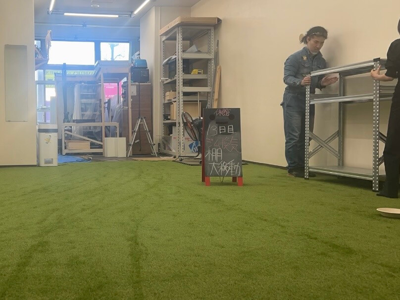 リニューアル休館もいよいよ13日目。 本来の計画では、8日に人工芝を敷いてから今週は少し体を休める予定でした。しかし、水面下で色々と「外野」が騒がしく……結局、一歩も引かずに作業を続け、今日という日を迎えました。