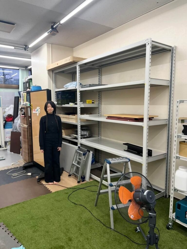 わずか20㎡ほどのスペースに、パーテーション、ミシン、エンコンパス、スチールラックなどが所狭しとひしめき合っています。すべては、16日の「メインディッシュ(マシン搬入)」を最高の状態で迎え入れるための準備です。