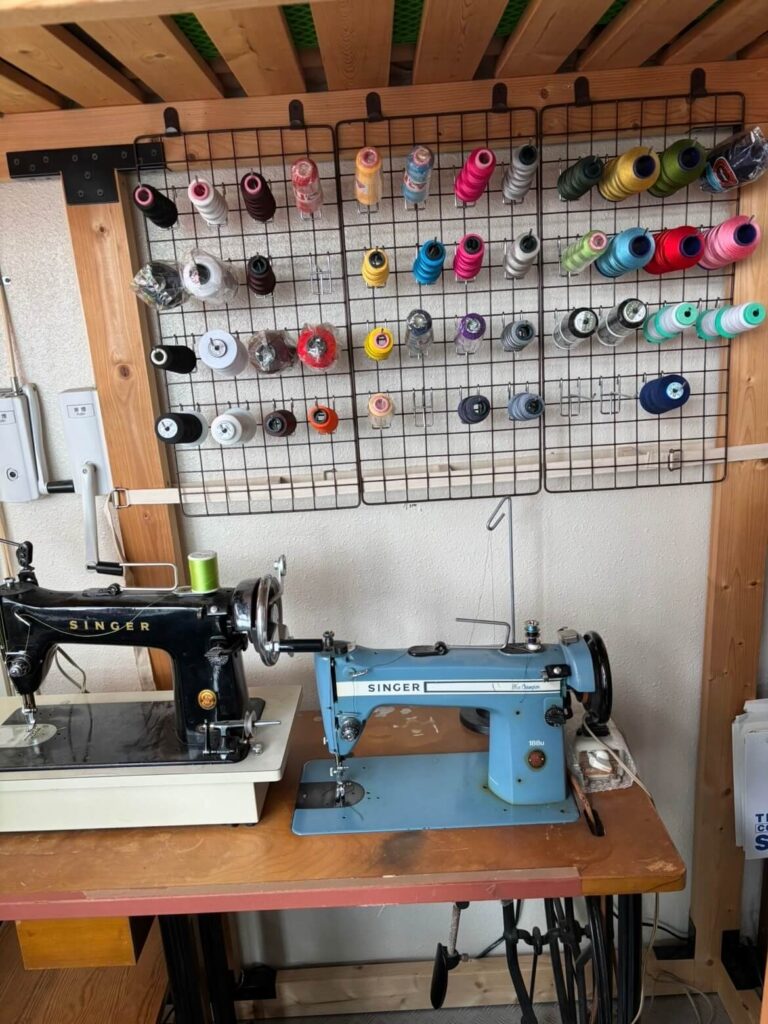 ミシンの前に糸を飾りました。