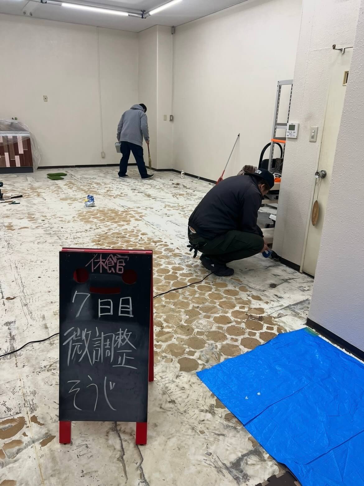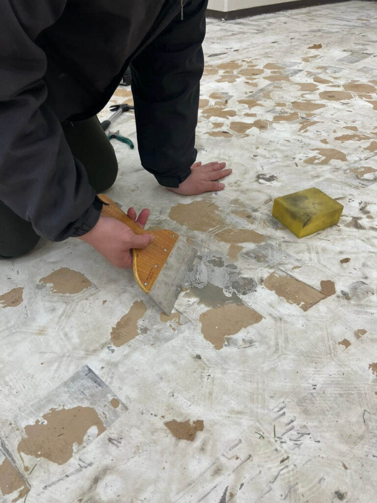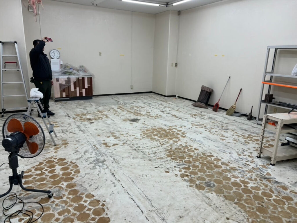 床処理: 昨日の床剥がしの残りを綺麗に削り取る