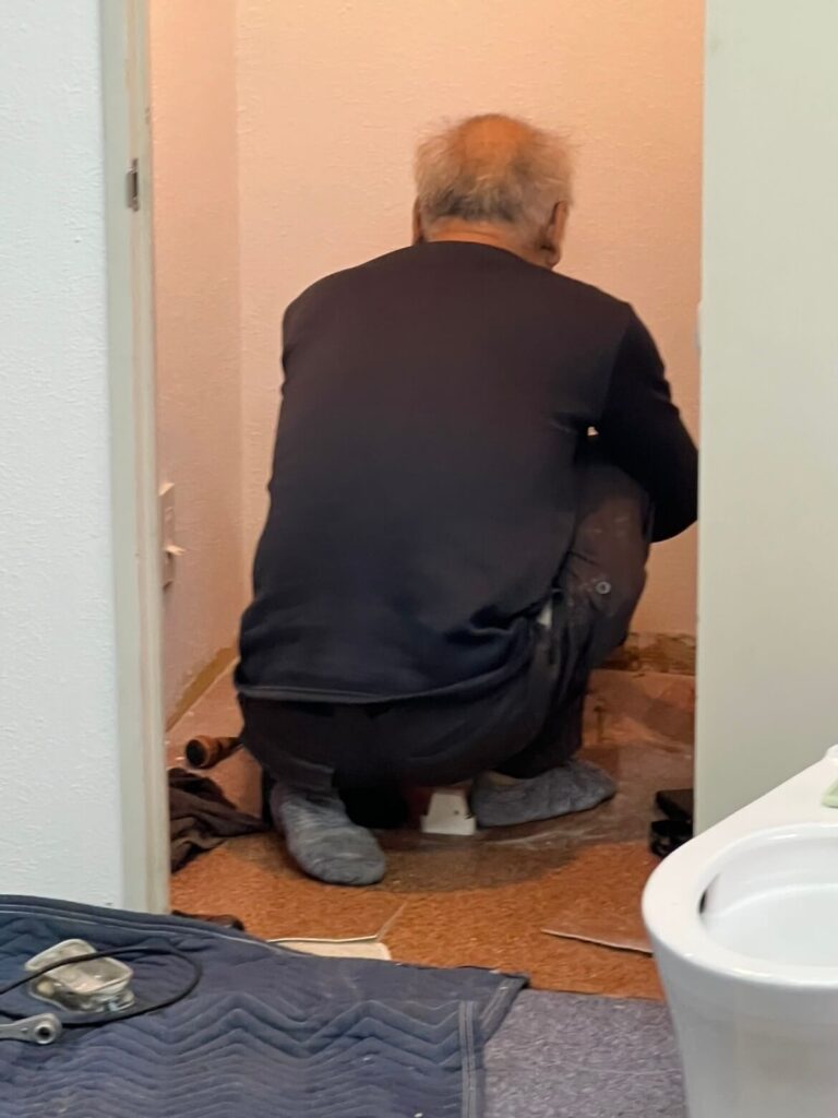 上階では、当たり前のように便器が丸ごと取り外され、床の下地から綺麗に工事されていたのです。