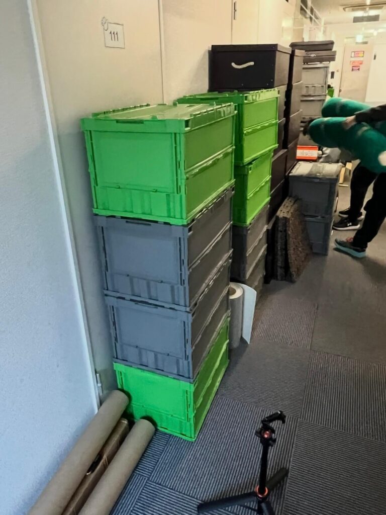 【効率的な連携プレー】 今回は、ラックを4個運んでいる間に一人がコンテナに残り、荷物整理を進めるスタイル。 1回1回荷物を出し入れしなくて済んだので、格段に効率が上がりました。