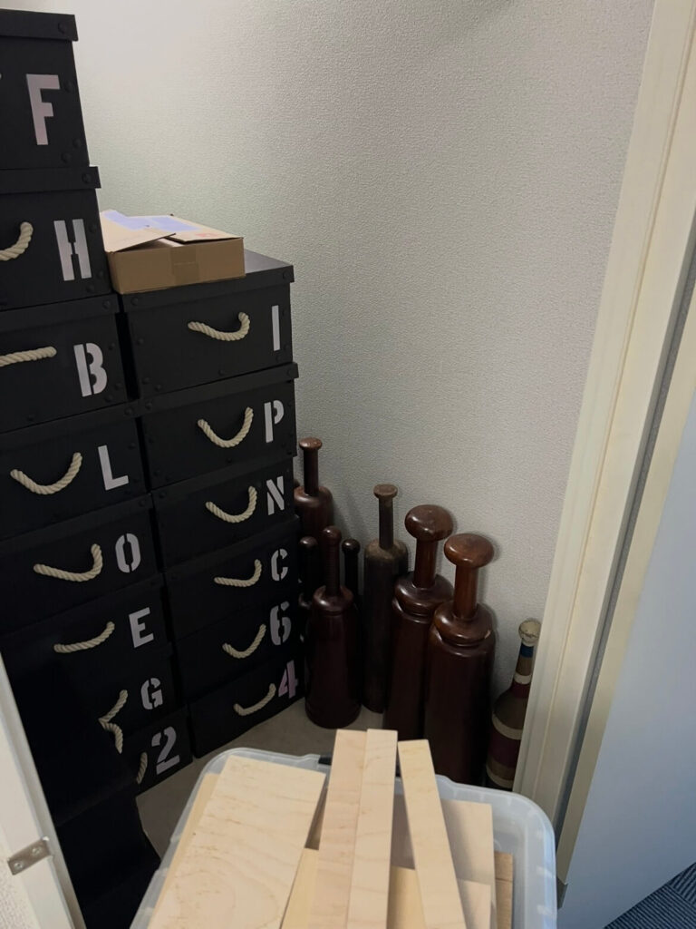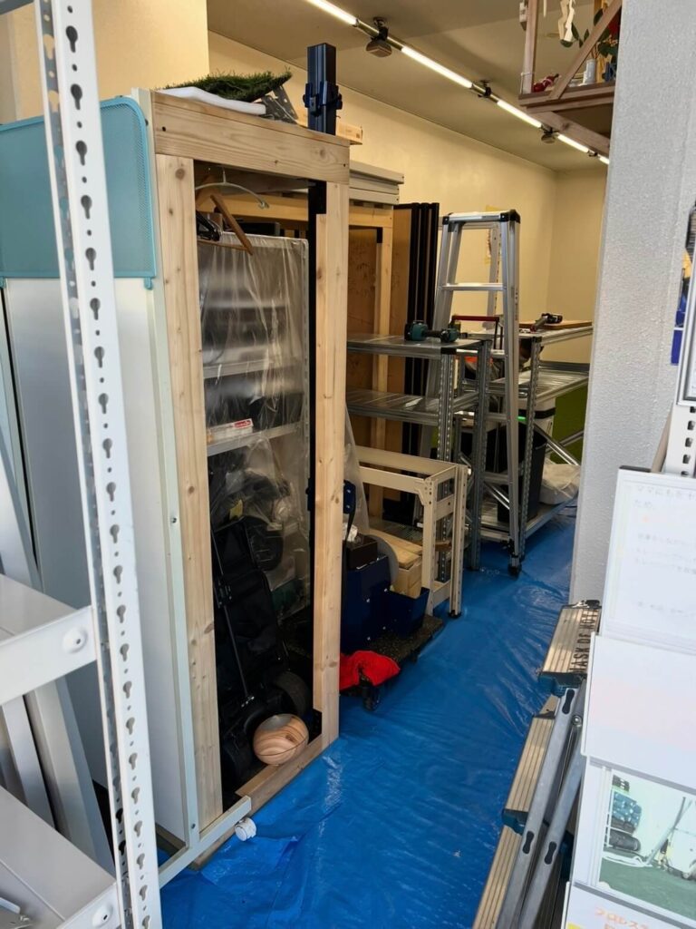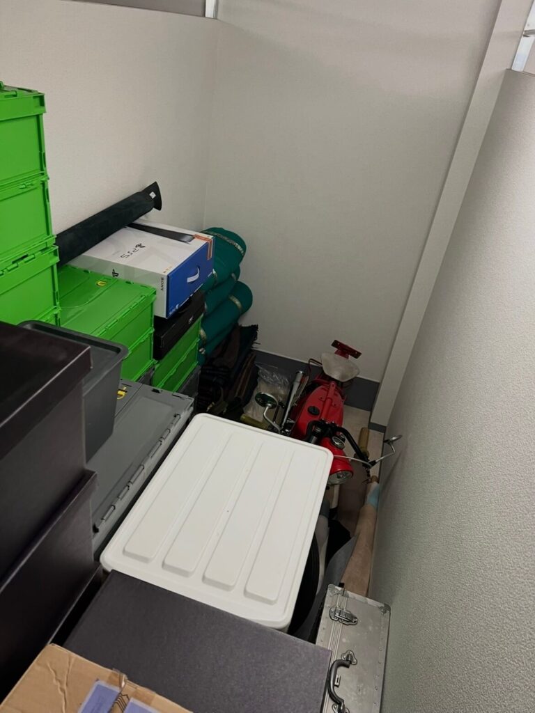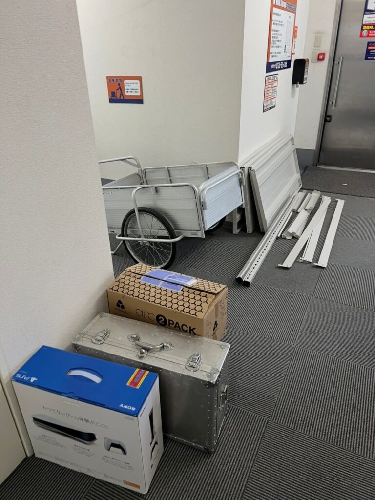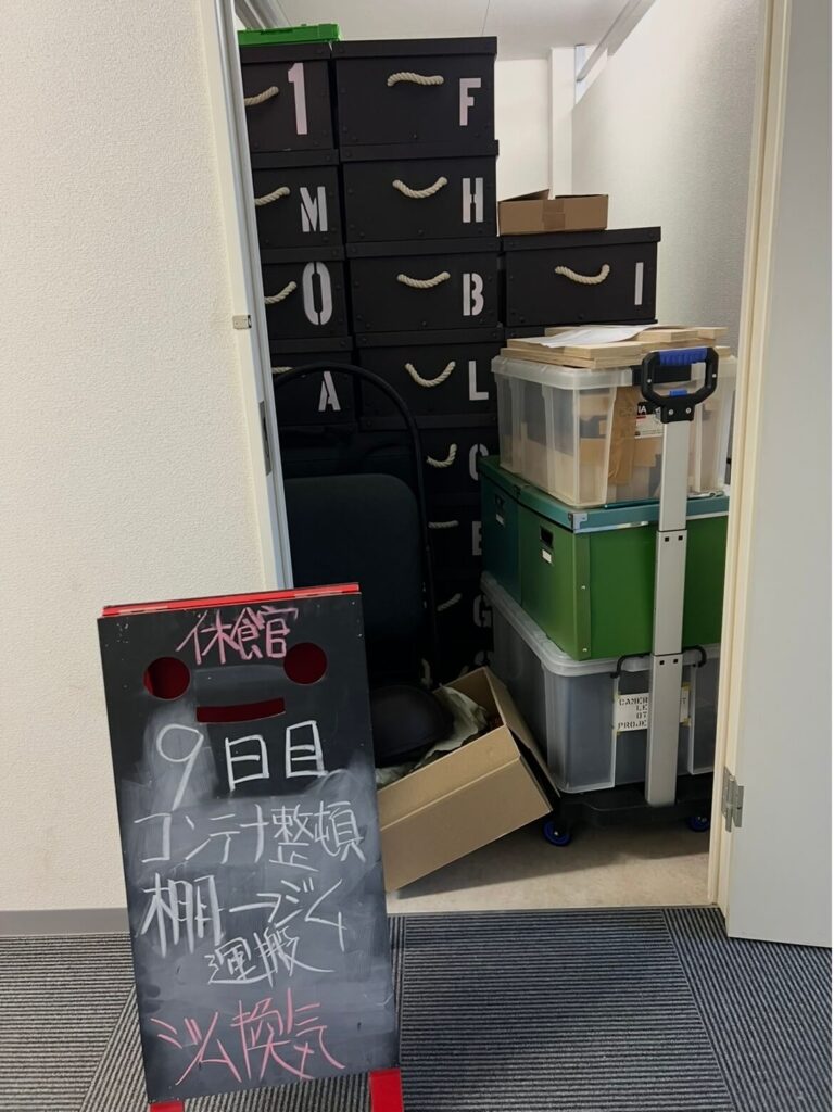 ここで少し余談(ボヤき)ですが……。 もし私1人で、コンテナルームからリヤカーを借りてジムに運搬する場合、一度に運べるのはカラーコンテナ4〜6個が限界です。 この膨大な荷物を移動させるために、私が仕事の合間に何往復してきたと思いますか? 移動した棚も、一人で組み立て、移動させ、復旧させています。