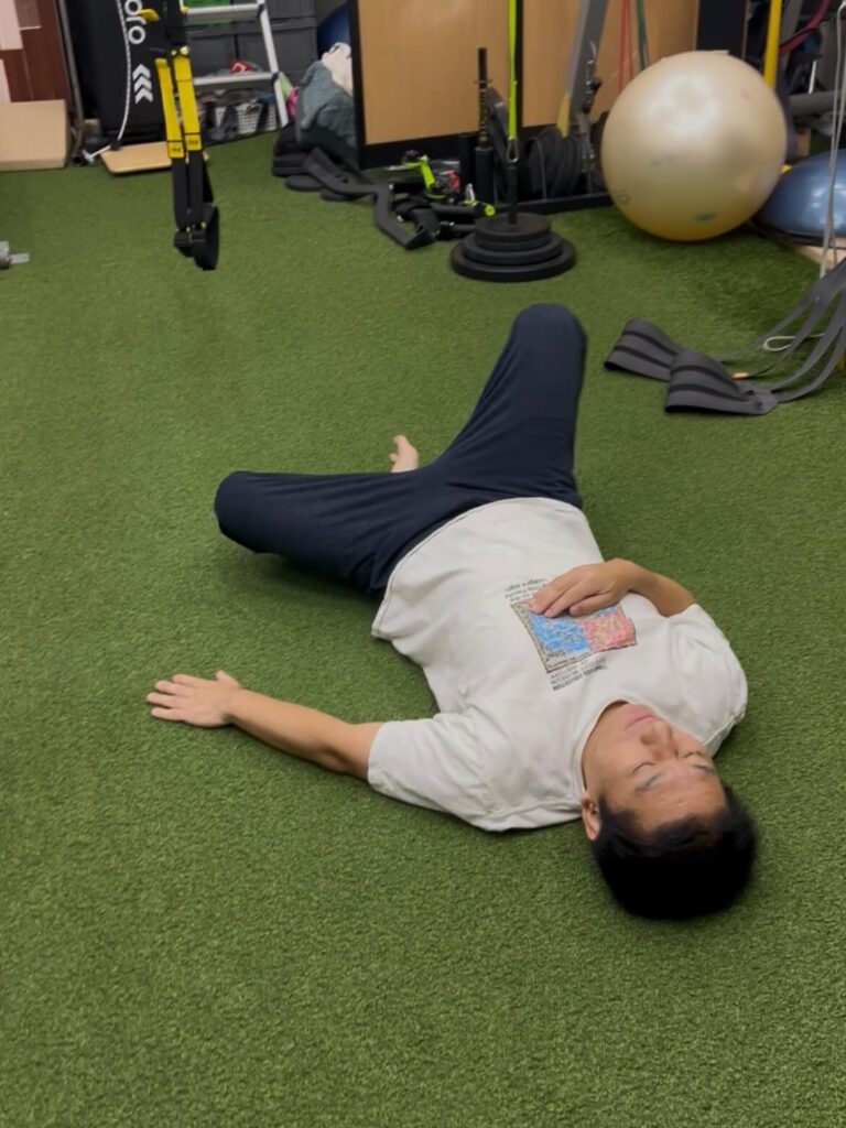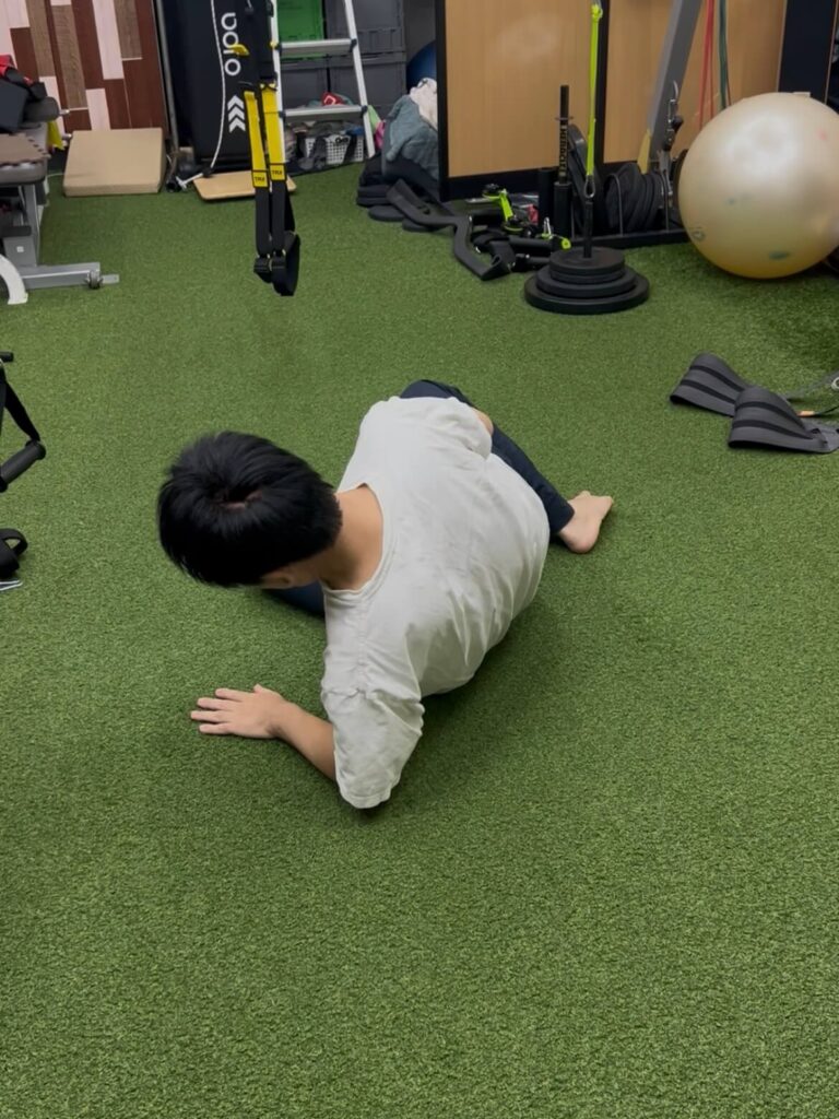 - まず、ランブルローラーの上に、そっと仰向けに寝てもらいます。