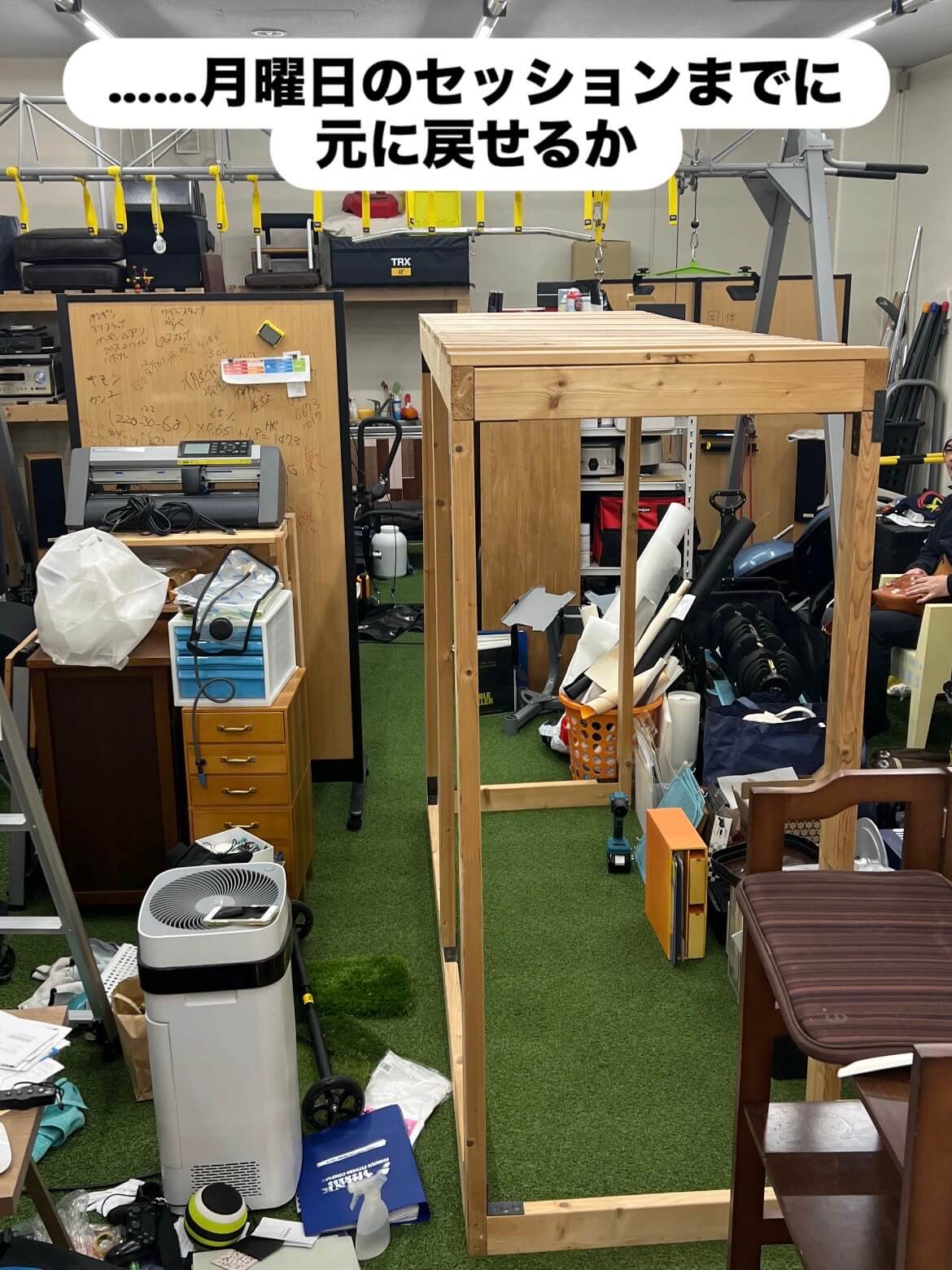元々は約68㎡のジムの広さに、今回の人工芝は48㎡の張り替えました。