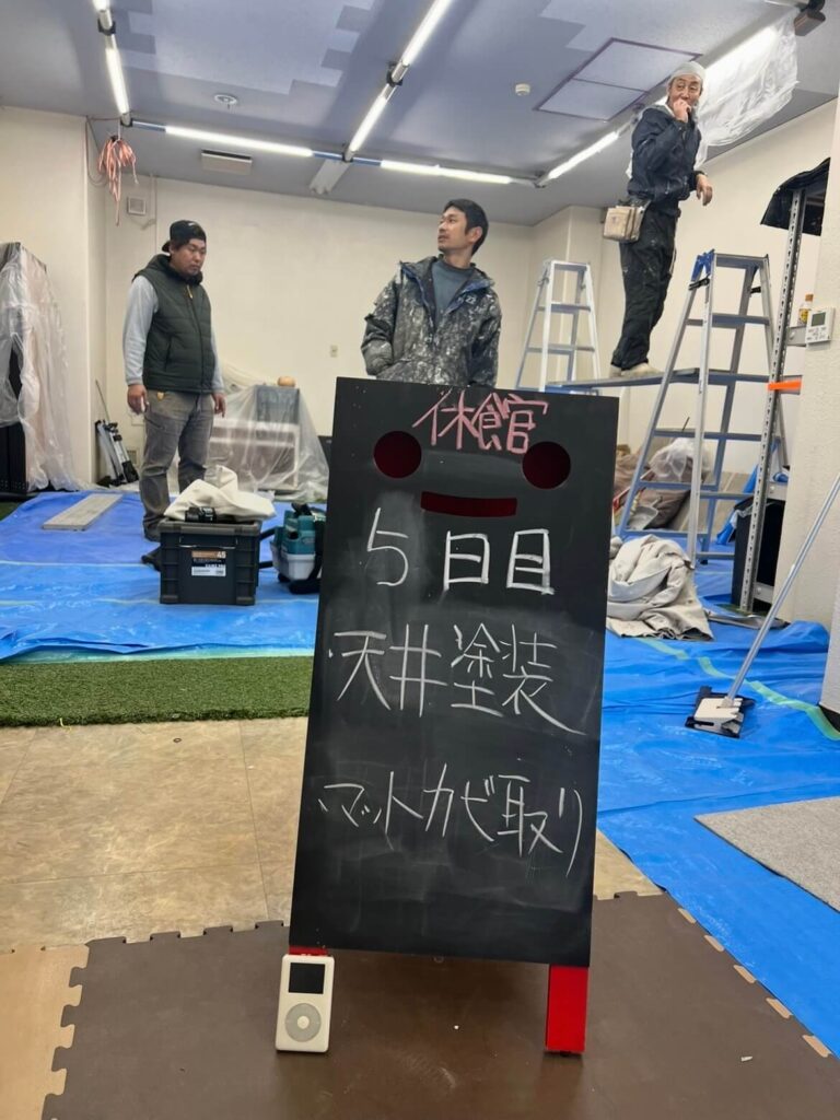 リニューアル休館『5日目 天井ペンキ塗装』
