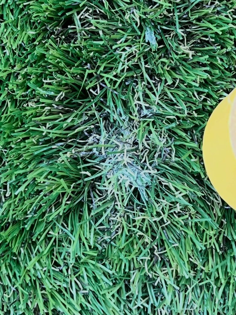 ウレタンボンドが、人工芝に引っ付いて固まっていました。
